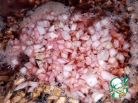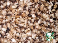 Порезать мелко грибы и высыпать их в сковороду. Залить водой и тушить;