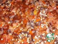 Промыть крупу и высыпать в сковороду. Всё перемешать и залить водой выше на толщину пальца. Готовить на среднем огне до испарения воды (ещё минут 20);