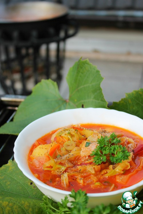 Рецептов борща на сайте множество и даже есть один в казане. Хочу предложить вариант на костре, который можно приготовить на природе или на даче. Количество абсолютно всех ингридиентов можно подобрать на свой вкус.