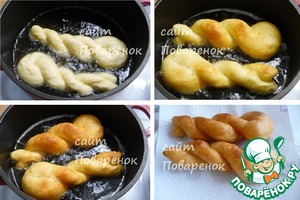 Хочу предложить рецепт нежных, вкусных пончиков-завитушек. Тесто воздушное, мягкое с интересной скрученной формой. Хороши пончики с сахарной пудрой, джемом, медом. Идею увидела в инете.