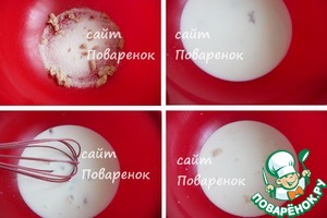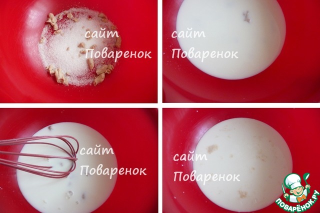 Дрожжи раскрошить в миску, добавить сахар, влить теплое молоко.