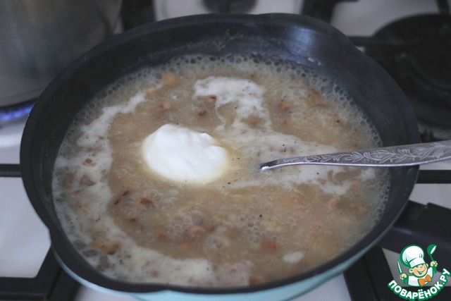 Добавить 1 ст. ложку сметаны. Загустить, помешивая соус до нужной консистенции.