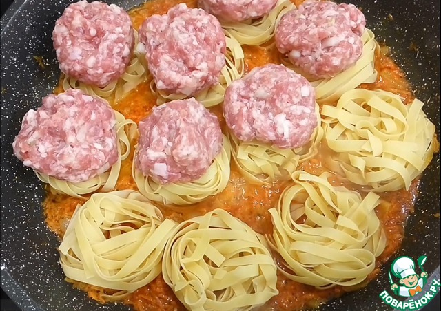 [+4]Во второй раз добавила рис, чеснок, побольше перца и котлетки предварительно обжарила. Гнёздышки в этот раз были из суповой лапши. Понравилось больше.