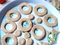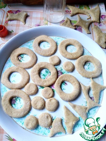 Стаканом вырезала круги, насадкой на кондитерский шприц- вырезала серединки. |