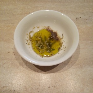 Для заправки смешать оливковое масло, лимонный сок, специи и соль.