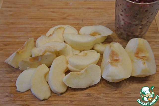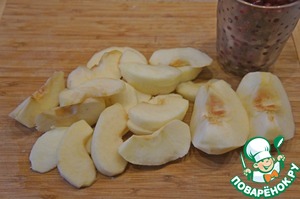 Подготовить продукты. У меня яблоки, но можно и груши, и сливы, и апельсины, как и ягоды возможны любые: клюква, брусника, черника... У меня брусника.