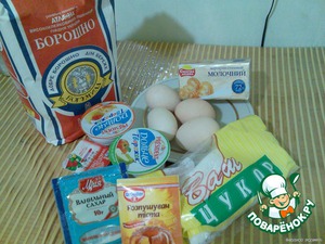 Яйца взбить с сахаром, добавить ванильный сахар, затем мягкий маргарин, творожные десерты, муку и разрыхлитель.