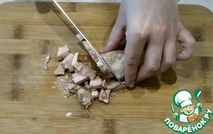 • Два яйца нарежьте кубиками, а одно разрежьте на четыре части для украшения.