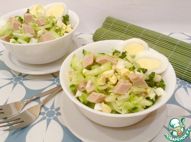 За неимением дома капусты, использовала салат " айсберг", и огурцы я всегда чищу от кожицы.... Салат получается очень нежный !!!