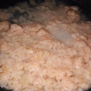 Минут через 5 высыпать туда же пшено и налить стакан воды. Перемешать. Готовить ещё 10 минут на среднем огне;