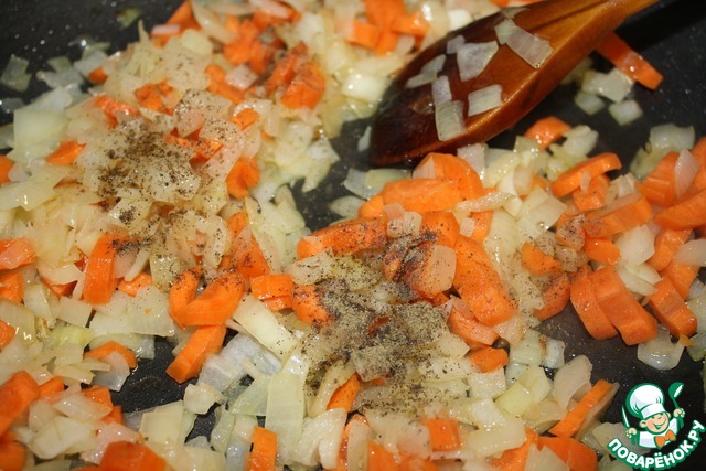 Обжарить на масле с добавлением перца. -