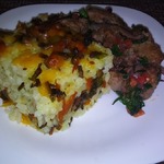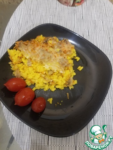 Вместо зелёного репчатый (не заметила, когда закупала продукты на блюдо, что зелёный, и дома его не оказалось). Это, конечно, совсем другой вкус, но тоже хорошо получилось, вкусно