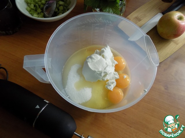 Рецепт «Простая шарлотка с ревенем и яблоком»:
