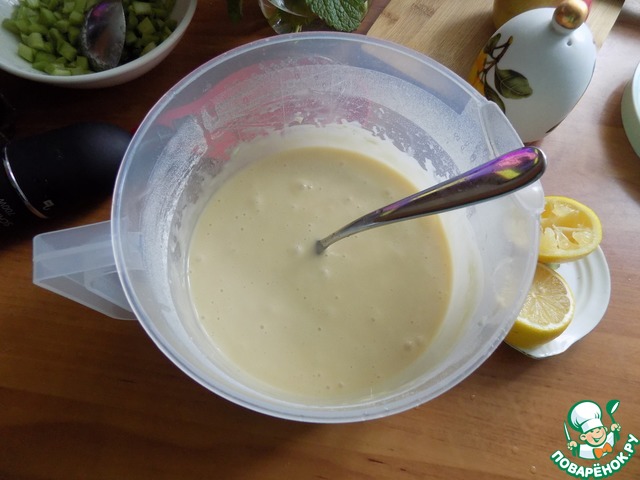 Тесто готово, отжимаем из половины лимона сок и добавляем цедру. Перемешиваем ложкой.