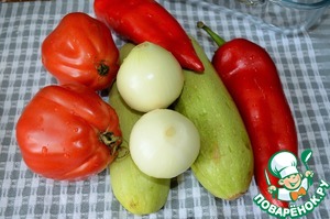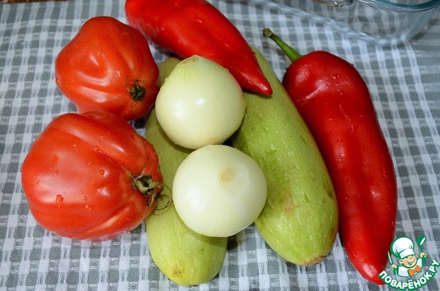 И шайбы кабачка, лук и зубки чеснока, посолить,