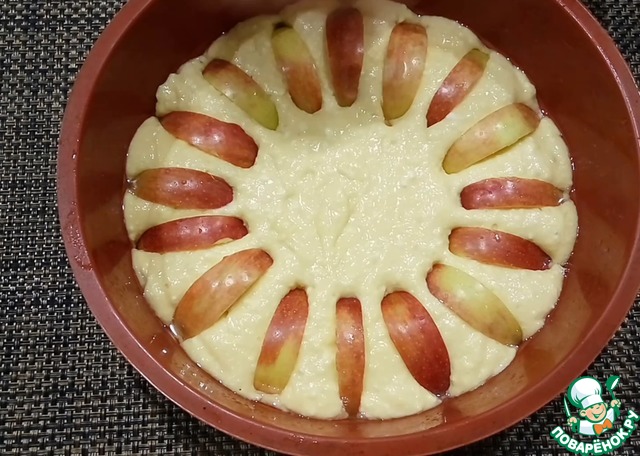 Яблоки разрежьте на дольки и выложите сверху на тесто.