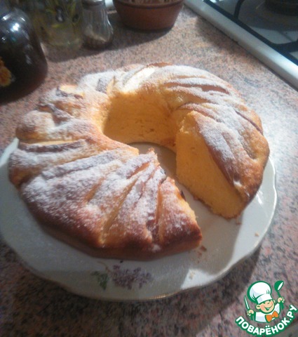 Шарлотка с яблоками и творогом готова! Всем приятного чаепития.