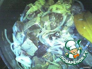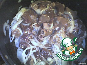 Постоянно помешивая, обжариваем печень. Она НЕ должна зарумяниться, а только "побледнеть"