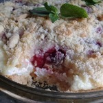 Теплый крамбл полить сиропом, украсить мятой (по желанию).