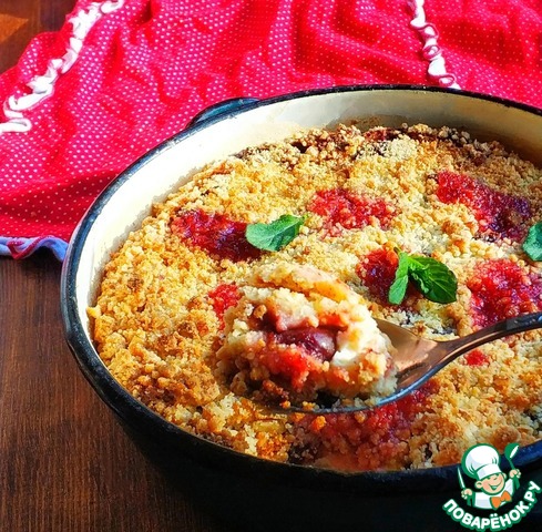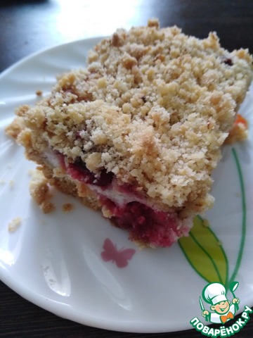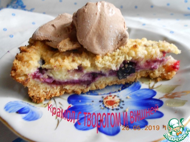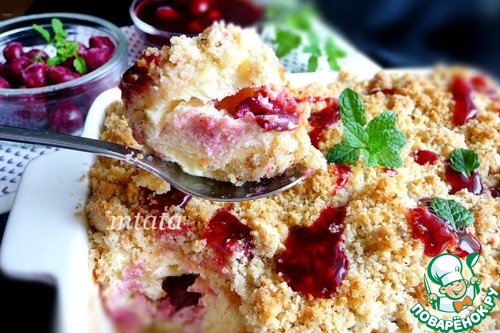 Крамбл получился не сильно сладкий с кислинкой от вишни. Благодарю за замечательный рецепт!