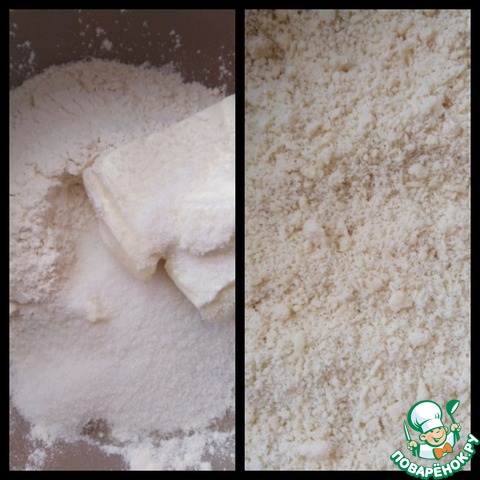 Для теста нужно смешать масло с мукой, сахаром и сделать штрейзель (проще говоря растереть в крошку).