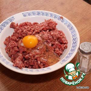 В фарш добавить яйцо, посолить, поперчить и перемешать