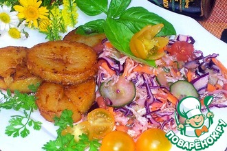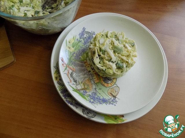 Я буду салат подавать каждому индивидуально и поэтому порции я выложила в кольцо на тарелку.