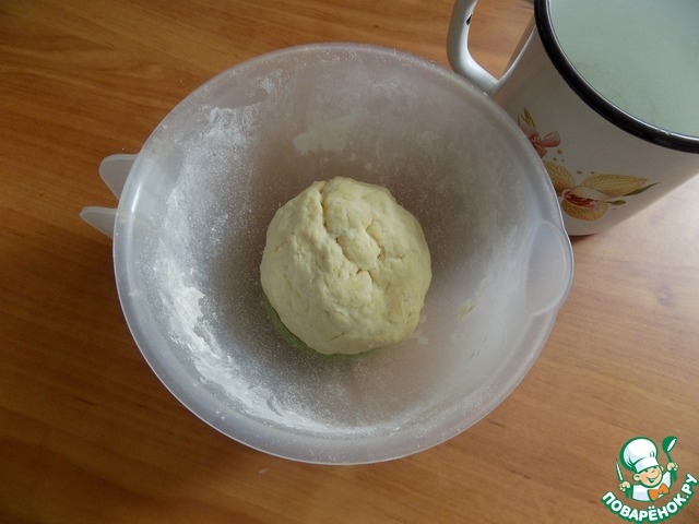 Формируем из теста шар, перекладываем в эмалированную посуду и ставим в тёплое место. Я грею всегда духовку. Идеальная температура 50 С. Накрываем посуду полотенцем и даём тесту постоять 30-35 минут.