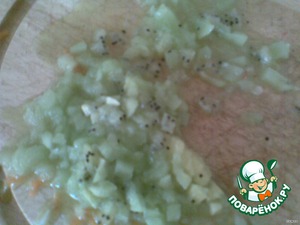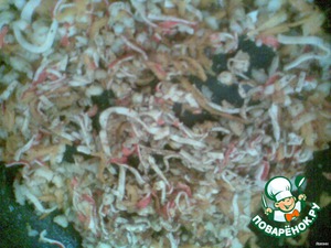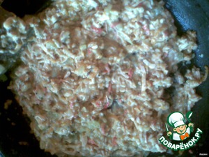 • вот такая начинка. Лучше, если ее протереть в блендере, я так оставила за неимением последнего.