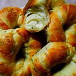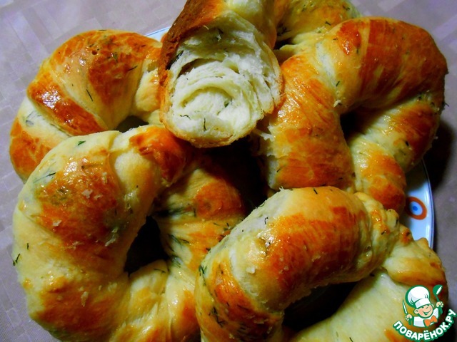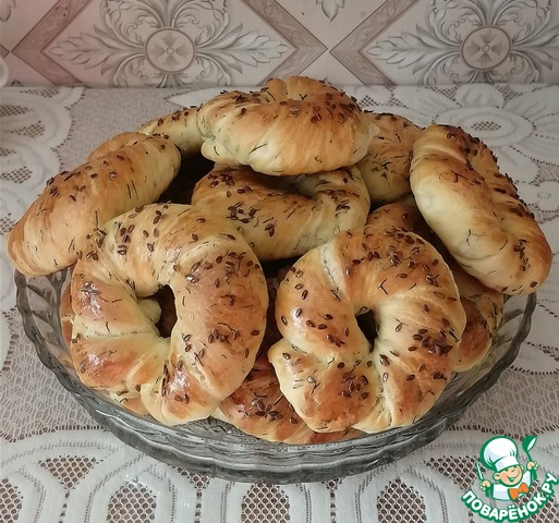 Смазываем кольца желтком и отправляем выпекаться в разогретую до 180°С духовку. Через 15-20 минут солёные кольца с укропом готовы!