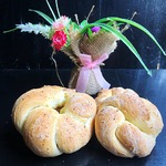 Отрываем от теста кусочки размером с небольшое яблоко, скатываем в шары, выкладываем на стол, присыпанный мукой, сверху в углубление кладём кусочек подтаявшего сливочного масла. Формируем из теста кольца, которые выкладываем на противень, застеленный пергаментной бумагой. Оставляем кольца подыматься на 20-30 минут.