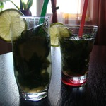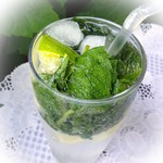 Mojito. Коктейль на основе белого рома и листьев мяты. Существует два вида мохито: слабоалкогольный и безалкогольный. Происходит с острова Куба, стал популярен в США в 1980-х. Название переводится с испанского языка, как «мокрый».