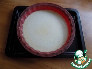 Берём любую форму. Я взяла силиконовую и всё-равно смазала её подсолнечным маслом нерафинированным без запаха. D-20 см и высота 5 см моей формы. Выливаем смесь в форму. Греем духовку до т-180 С и ставим форму на 30-35 минут в неё. Ориентируйтесь по своей духовке. У меня эл. духовка на 15 л, печёт очень быстро.