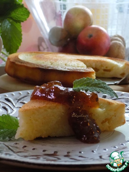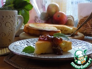 Вот такой манник в разрезе. К маннику я подам джем и свежую мелиссу. Ваша фантазия, чем вы его дополните.