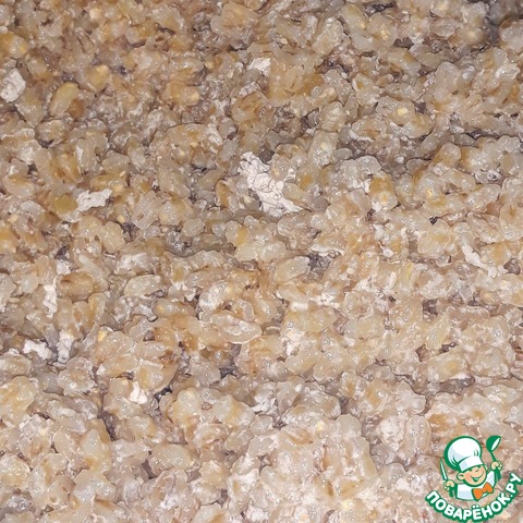 Промыть перловую крупу и замочить на ночь. Затем слить воду. Крупа впитает немного воды, так что из 400 грамм вышло 650;
