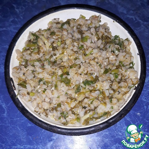Рецепт «Перловка с имбирём, щавелем и петрушкой»: