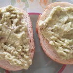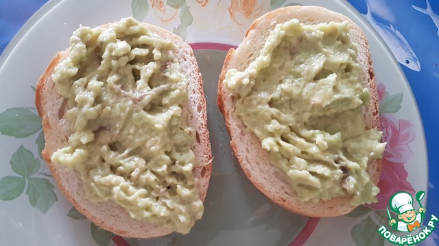 Размять вилкой, посолить, поперчить, полить соком половины лимона. Размешать.