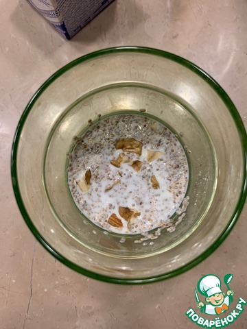 Смешайте все ингредиенты (по вкусу можно добавить орехи или сухофрукты) и дайте пудингу постоять 10-15 минут. Потом опять перемешать и убрать в холодильник на ночь (чем дольше простоит, тем лучше, но можно и 30 минут).