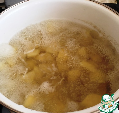 Картофель почистить от кожуры, нарезать на квадратики и варить до готовности. Затем слить всю воду и добавить 1 яйцо, пол стакана молока и посолить по вкусу. Должно получится густое пюре, чтобы из его можно было лепить. Если у вас получилось жидковатое пюре, добавьте немножечко муки до нужной консистенции