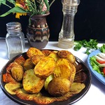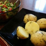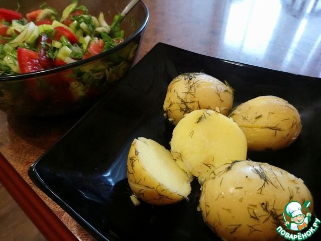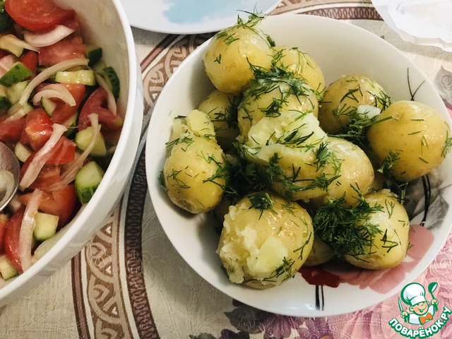 восхитительная подрумяненная картошечка,да еще и любимый салатик,я в восторге