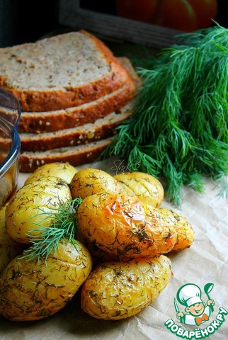 Запекать картофель в разогретой до 180*С духовке, 30 мин., духовку отключить.
