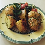 Подавайте молодой картофель, запеченный в рукаве, с зеленью и овощами (идеально в данном случае подойдут томаты).