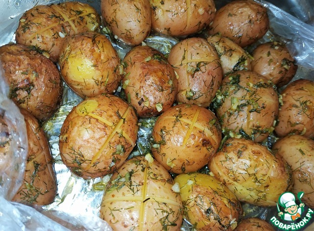 Картофель оставить в духовке на 10-15 мин., он станет мягким.