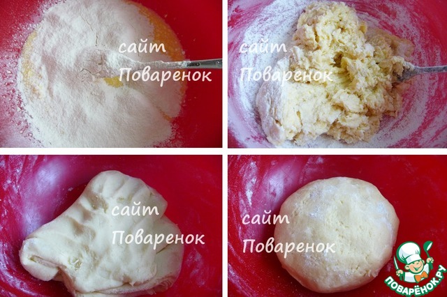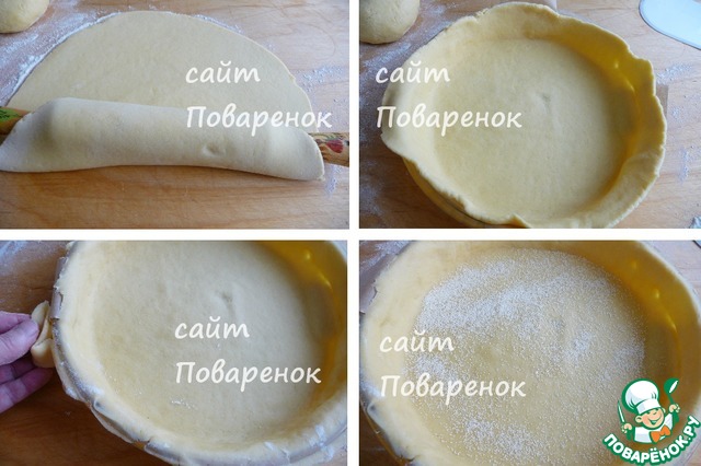 Раскатать большую часть теста в круг, размер больше, чем форма.
