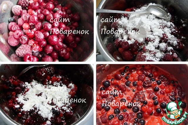 Добавить крахмал, желирующий сахар, тщательно перемешать, сахар и крахмал должны раствориться.