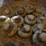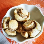 Затем отщипываем от тестяного колобка шарики и раскладываем их на противне. Вес каждого шарика - примерно 25 г. Если сделать шарики чуть больше (30 г), грибочки получатся более «закрытыми» на вид.
