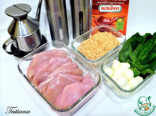 Заранее вымойте куриное филе, просушите бумажным полотенцем. Листочки шпината промойте в холодной воде, просушите. Моцареллу нарежьте пластинами. -