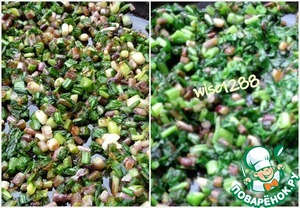Черемшу и шпинат порезать.