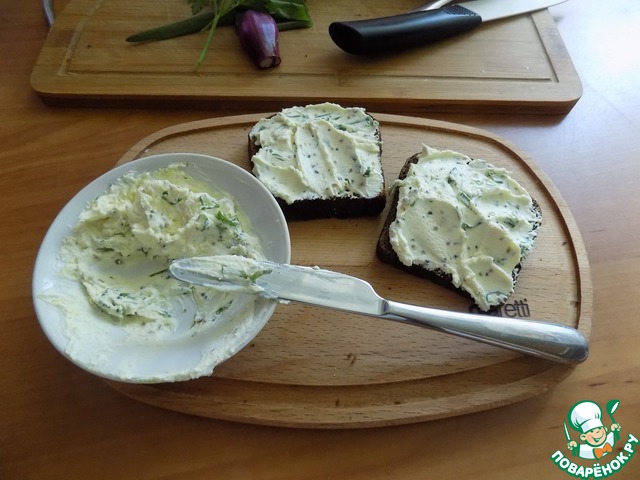 - Сыр творожный (я взяла сыр творожный с зеленью) — 2 ст. л.