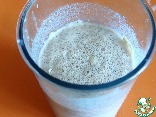 В теплом молоке растворить ложку сахара, дрожжи и две ложки муки. Поставить в теплое место и подождать до появления пенной шапочки.
